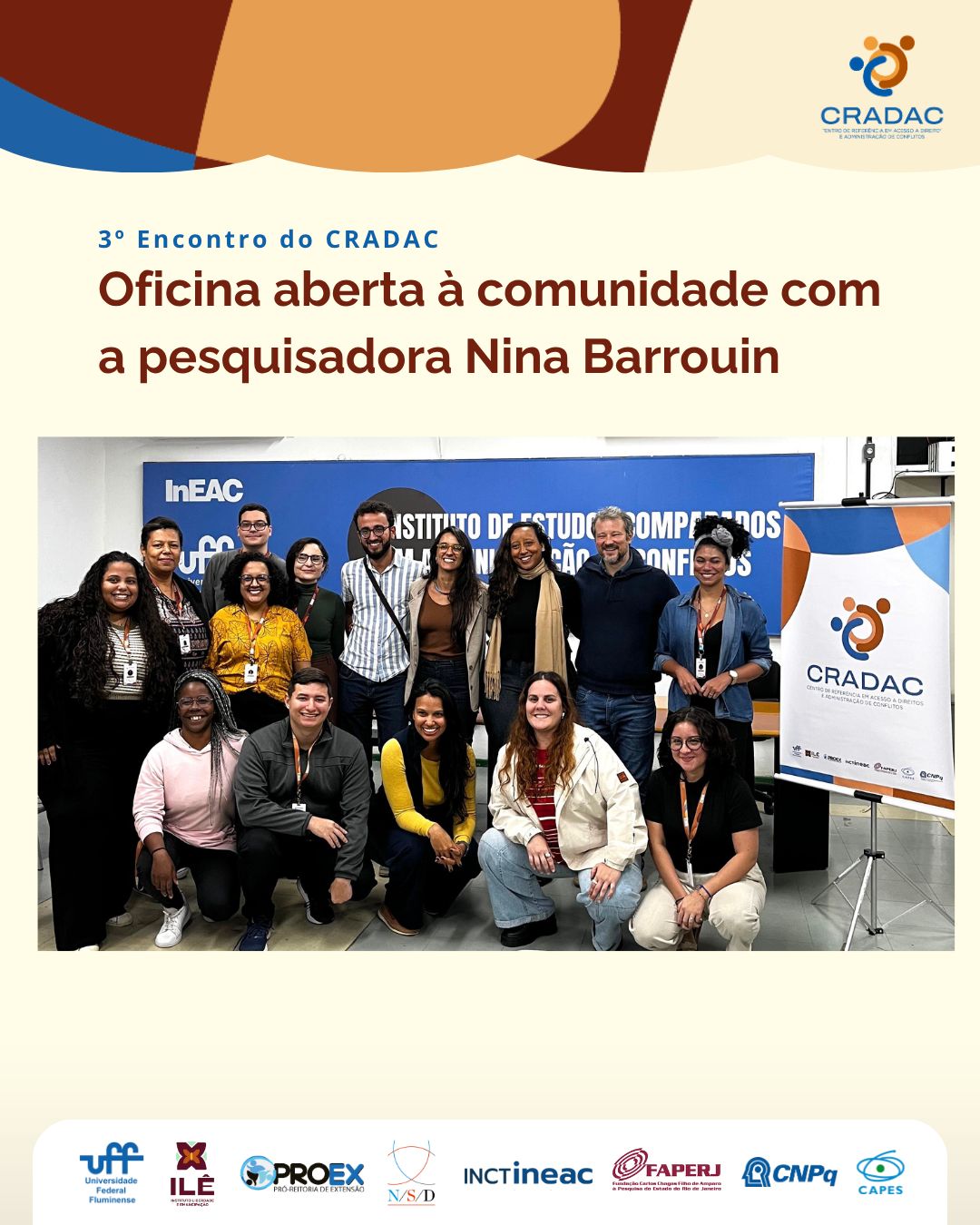 Na dia 07 de julho recebemos Nina Barrouin, Mestra em Teoria do Estado e Direito Constitucional e pesquisadora, para uma oficina aberta à comunidade no 3º Encontro do CRADAC.